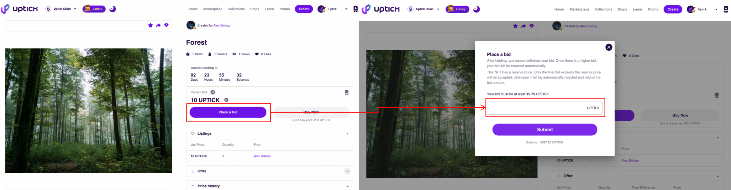 When you come across an NFT auction you like, you can bid on it. \